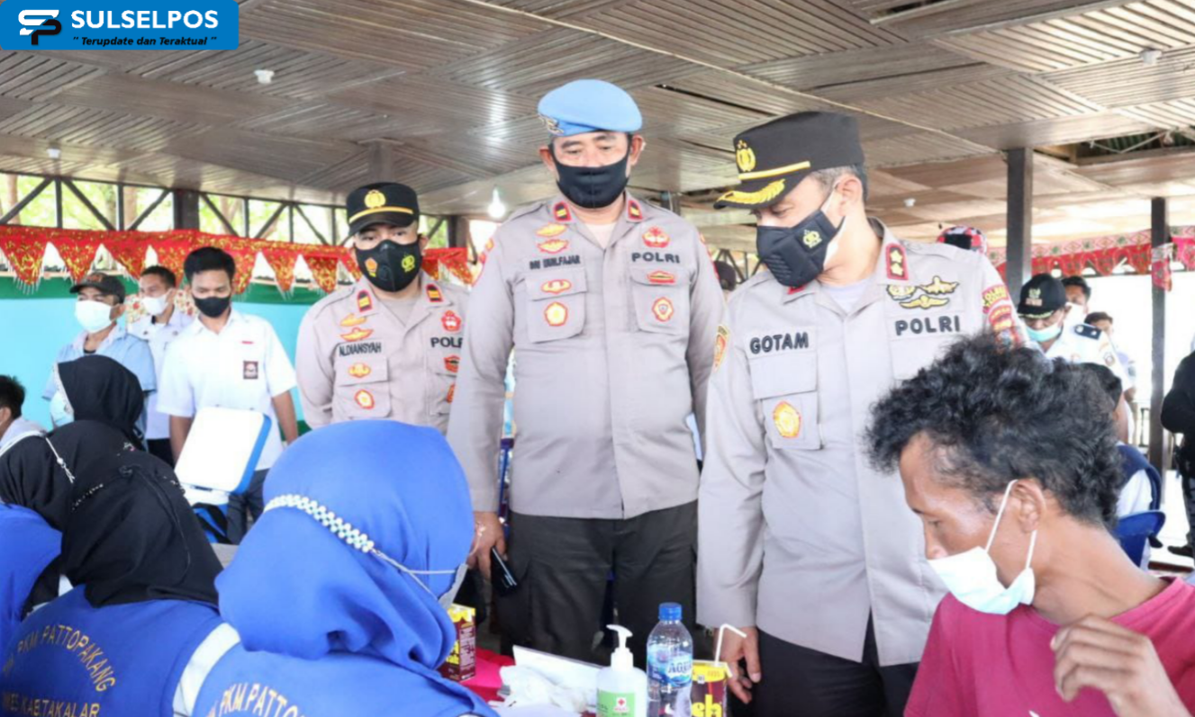 TAKALAR, Sulselpos.id - Kepala Kepolisian Resort (Kapolres) Takalar Polda Sulsel AKBP Gotam Hidayat meninjau langsung kegiatan Vaksinasi massal Presisi yang dilaksanakan di desa Cikoang, Kecamatan Mangarabombang, Kabupaten Takalar, Rabu (16/02/22).
